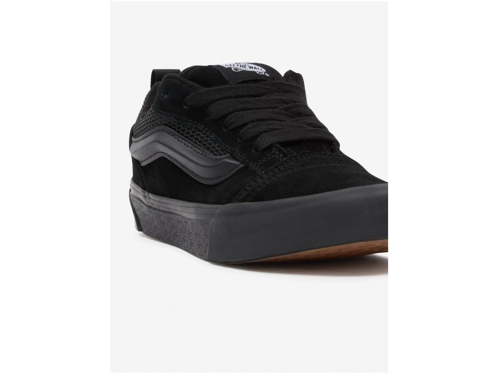 Knu Skool je reedice modelu z 90. let, kdy byly skate boty extra nafouklé. Tato nízká silueta vyrobená z robustních semišových svršků má velký nafouklý jazyk a kotníkový límec, což jí dodává přehnaný vzhled, který vychází z původního modelu Old Skool.