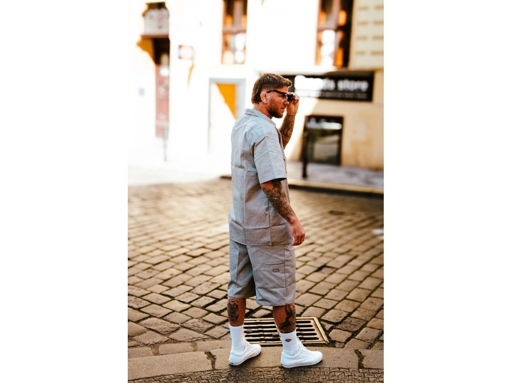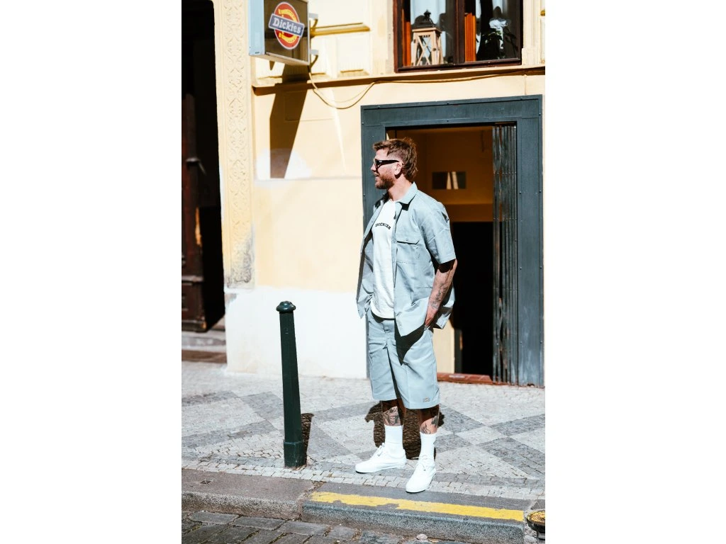 Široké kraťasy z 65% polyesteru, 35% bavlněného, recyklovaného kepru* a o gramáži 8,5oz. Díky použití bavlněného kepru zaručují kraťasy pevnost a odolnost materiálu. Loose fit je široký a rovný střih kraťasů s vyšším setem pasu, který má 7 poutek pro pohodlné nošení pásku. Kraťasy mají 2 přední kapsy se vstupem z boku, které jsou typické pro modely pracovních kraťasů. Zadní kapsy jsou 2, z toho levá má zapínání na knoflík a dále jedna boční, menší kapsa. Nášivku s barevným logem najdeme na boční kapse a na koleni vpředu.