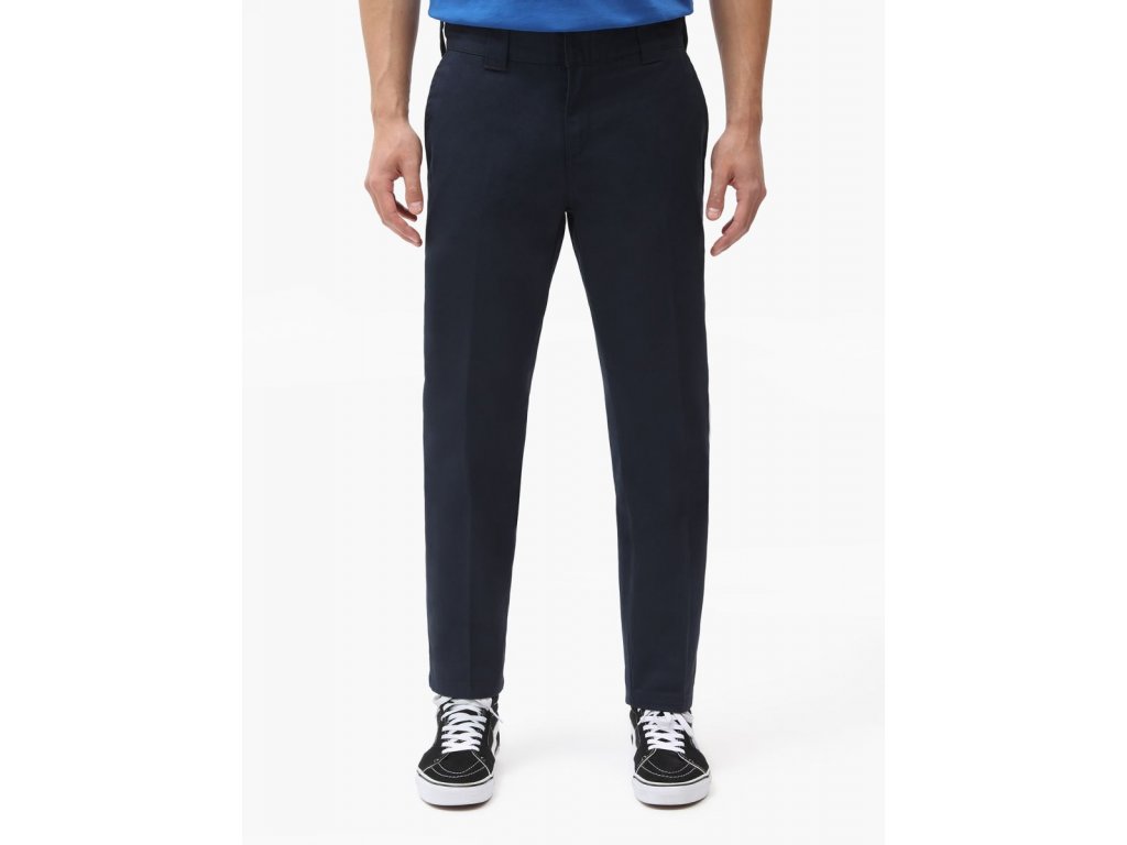 Užší střih kalhot z 65% polyesteru a 35% bavlněného kepru* o gramáži 8,5oz. Bavlněný kepr zaručuje pevnost a odolnost materiálu. Slim fit je užší, postupně se zužující střih kalhot s klasickým setem pasu, který má 7 poutek pro pohodlné nošení pásku. Kalhoty mají 2 přední kapsy se vstupem z boku, které jsou typické pro modely pracovních kalhot. Zadní kapsy jsou 2, z toho levá má knoflík na zapínání a nad pravou je černá nášivka s barevným logem.