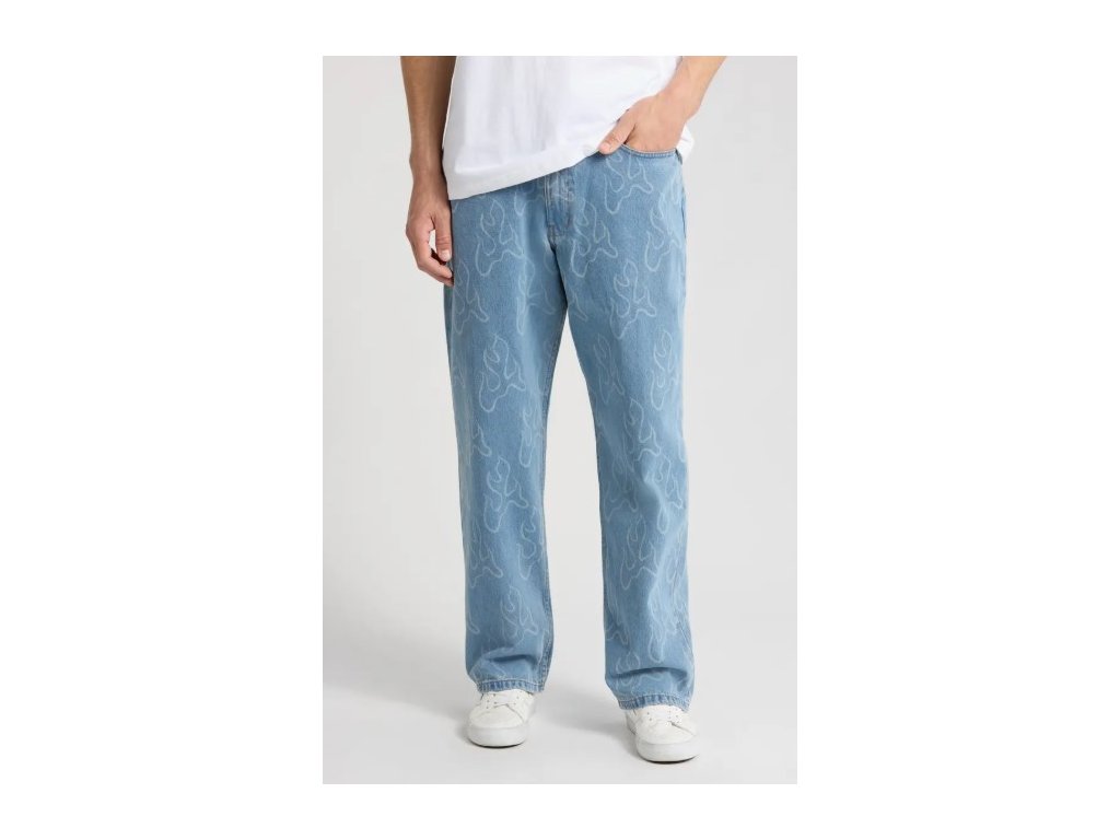 Postaveno na trvanlivost, Check-5 Blaze Loose Denim Pants jsou vyrobeny z těžkého džínového materiálu. Tyto kalhoty v klasickém volném střihu s pěti kapsami mají širší nohavice, které se zužují ke špičce. Tyto kalhoty také obsahují detaily, jako je kožená značka na pasu, celoplošný tónový potisk a detail "V" smyčky na zadním pasu.