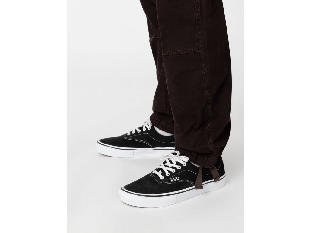 Volný střih kalhot ze 100% bavlny. Regular straight leg fit je širší a rovný střih kalhot s klasickým setem pasu, který má 5 poutek pro pohodlné nošení pásku. Kalhoty mají 2 přední, 2 boční a 2 zadní kapsy. Levá boční a pravá zadní májí černou nášivku s barevným logem.