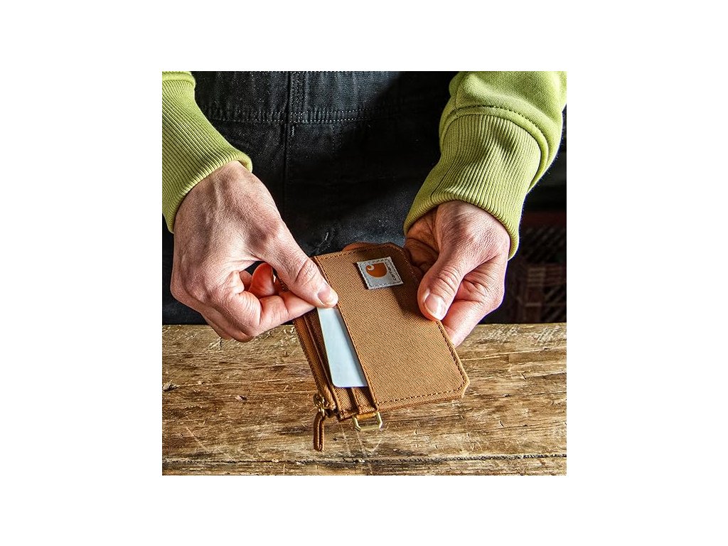 Peněženka Carhartt Zippered Card Keeper Wallet je kompaktní a odolný doplněk navržený pro každodenní použití. Je vyrobena z 500D Cordura® nylonu s Rain Defender™ vodoodpudivou úpravou, která pomáhá chránit obsah peněženky před vlhkostí a nepříznivými podmínkami.