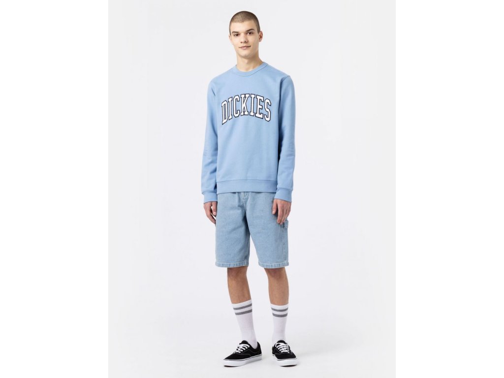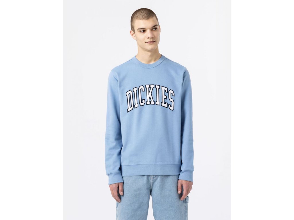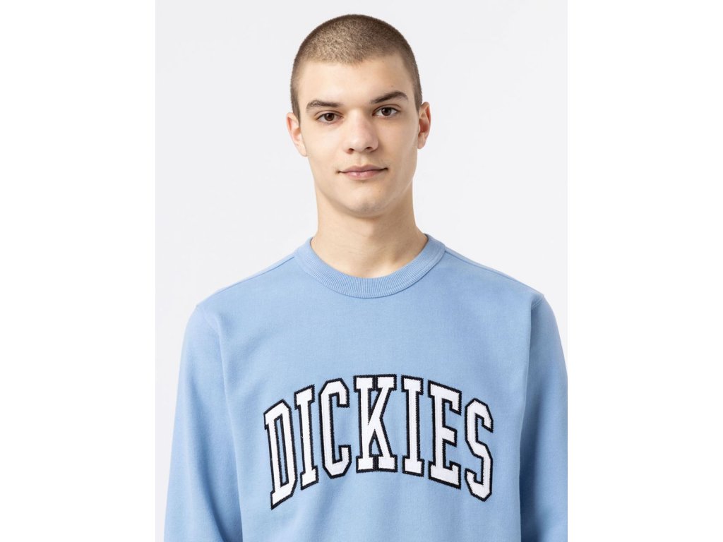 AITKIN SWEATSHIRT je mikina s výraznou nášivkou Dickies přes hruď. Našivku tvoří jednotlivá písmena, která jsou zvýrazněna červeným lemem.