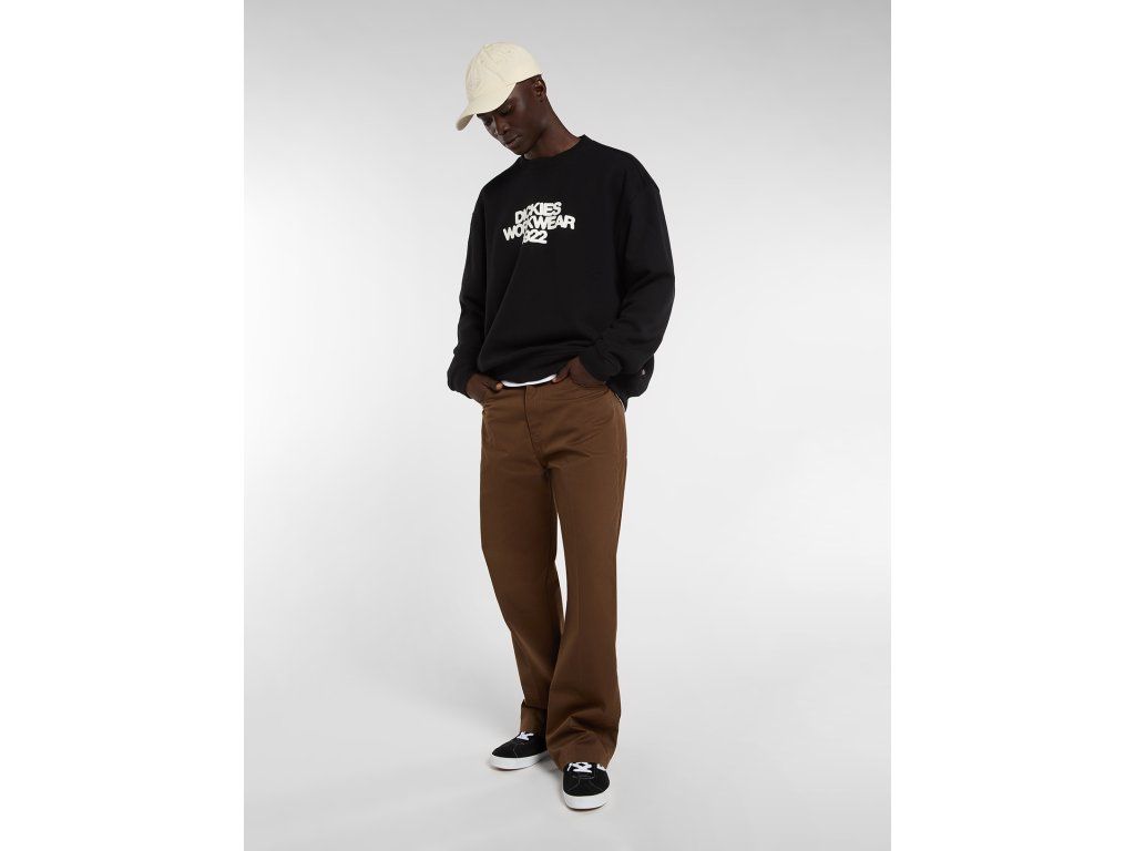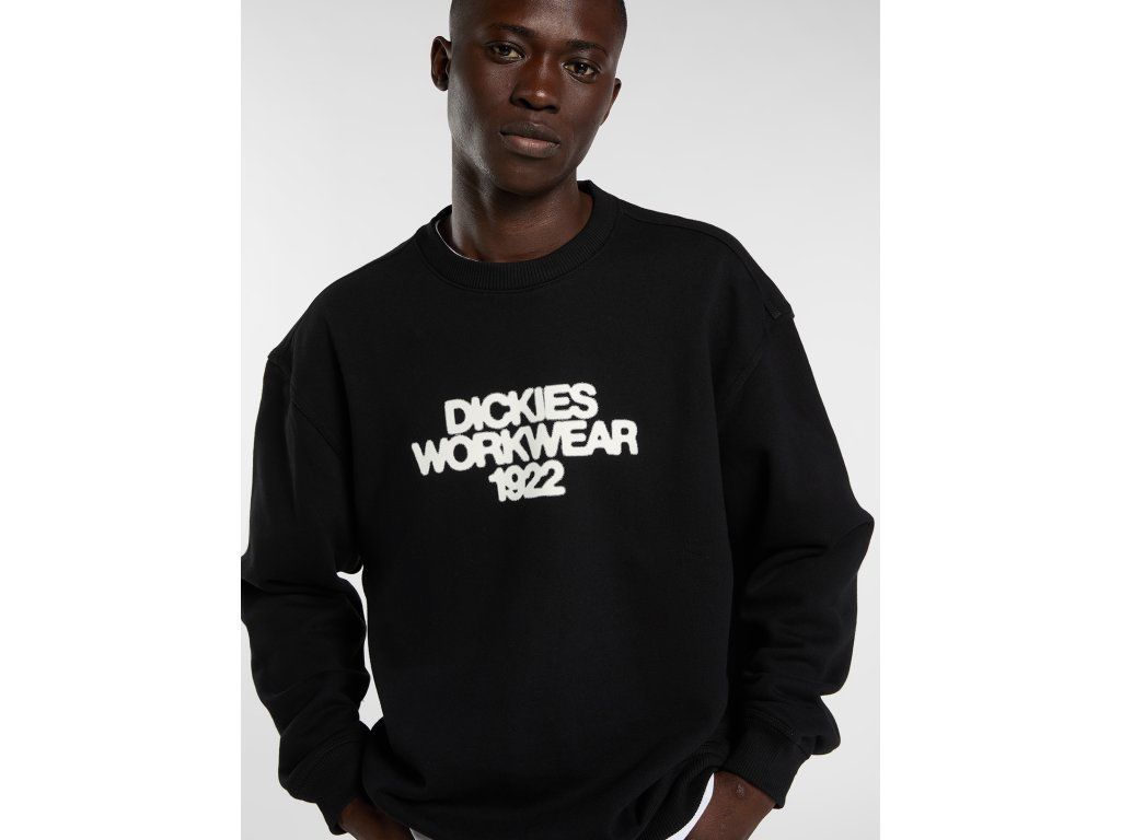 Design doplňuje grafika „Workwear 1922“ na hrudi, která odkazuje na heritage značky Dickies a dává mikině jasný identity kus (není to úplný basic).