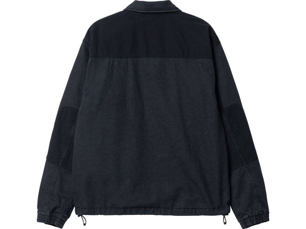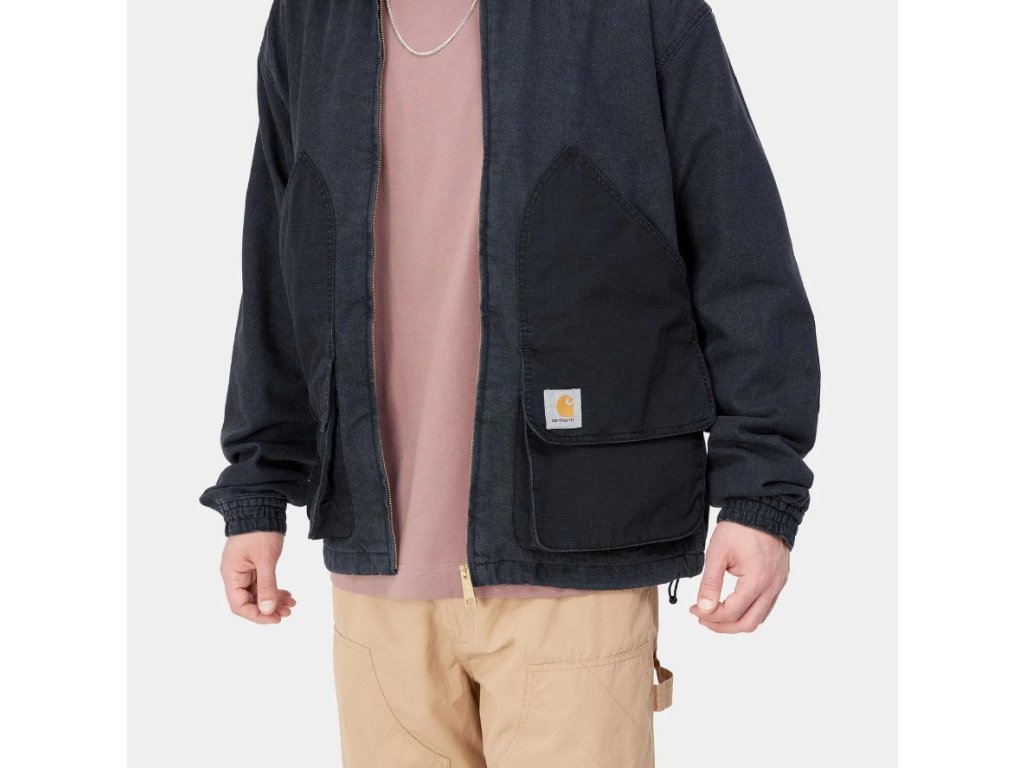 Carhartt WIP Alma Jacket je utilitární bunda inspirovaná workwear estetikou značky. Konstrukce kombinuje středně těžký Perry denim a odolné ripstop panely, což zajišťuje pevnost a zároveň zajímavý kontrast materiálů.