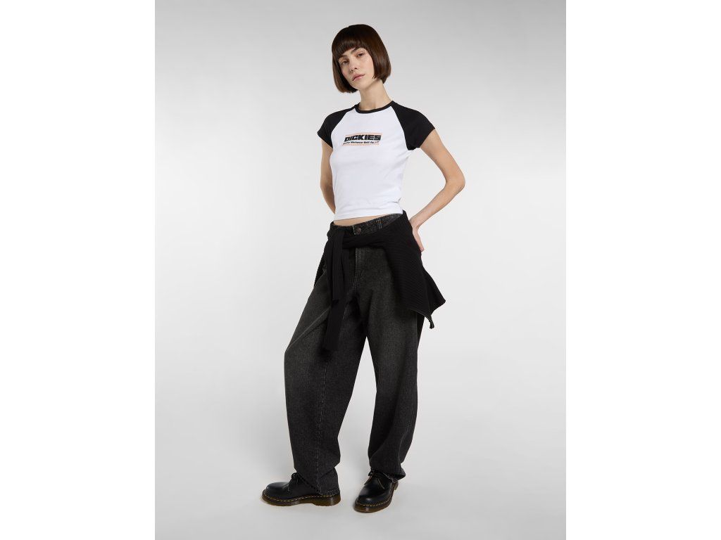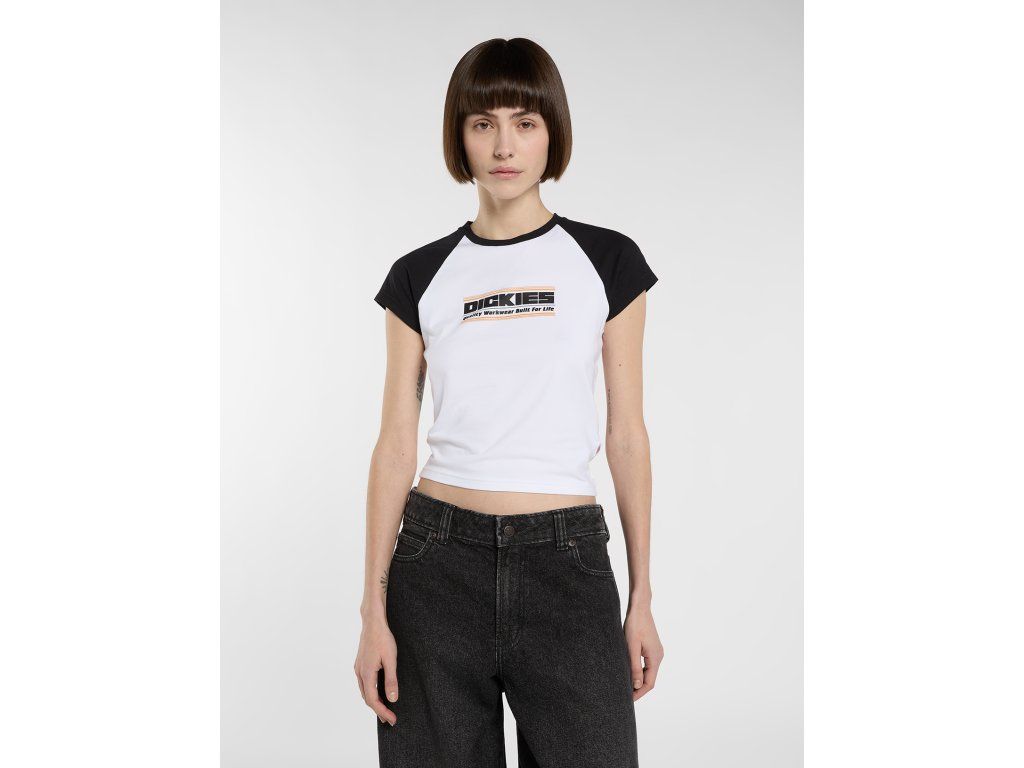 Tričko Dickies Derby Raglan Midweight T-Shirt je dámský model z EU kolekce, který kombinuje sportovní raglan design s výrazným brandingem. Typickým prvkem jsou kontrastní rukávy a centrální logo, které dávají tričku retro sportovní vibe.