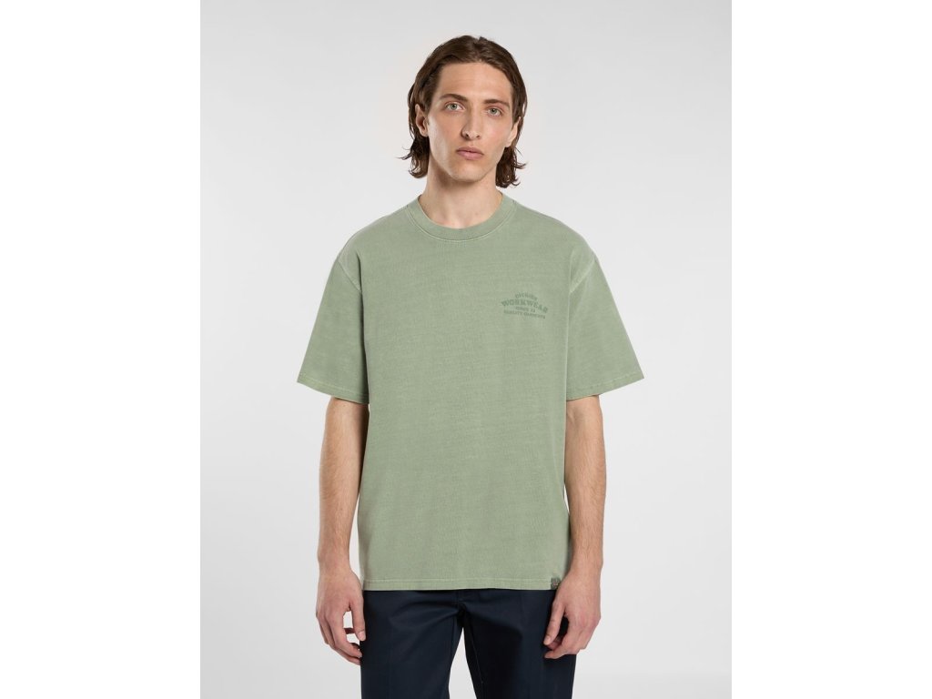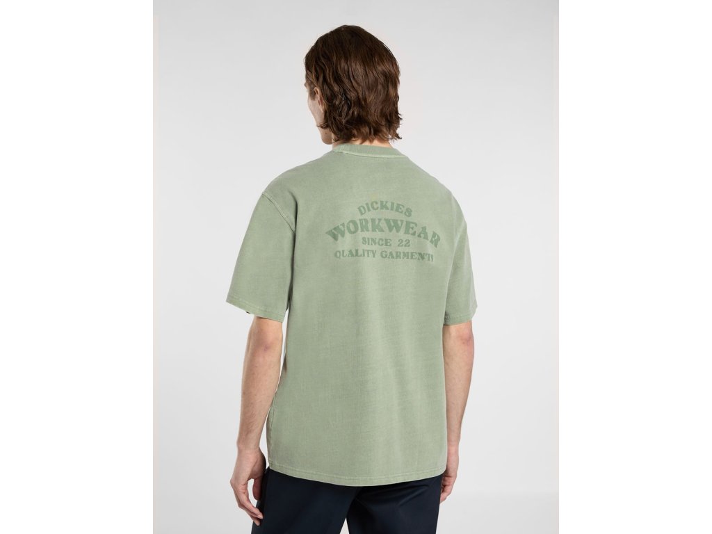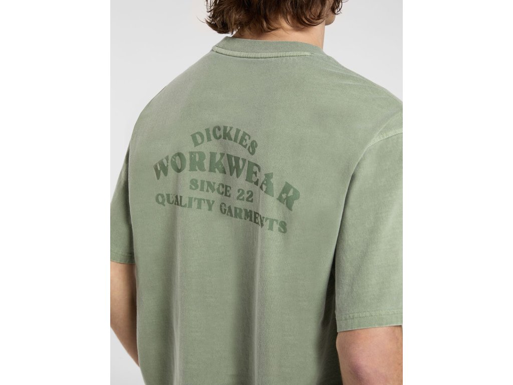 Pánské tričko Dickies Christiana – pohodlné tričko se střední gramáží a krátkým rukávem, ideální pro každodenní nošení. Díky speciální barvené úpravě „garment dye“ má jedinečný vzhled s lehce vintage efektem. Na hrudi i zádech ho zdobí originální grafika inspirovaná retro reklamními cedulemi. Nechybí ani typické autentické detaily značky Dickies.